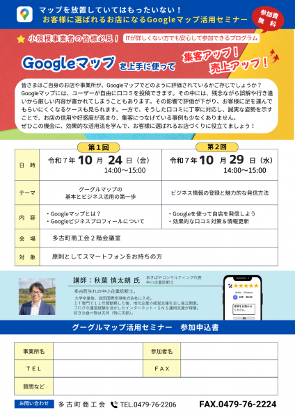 24日・29日は2回に渡ってGoogleを活用して集客・売上アップにつなげる為の内容となっております。